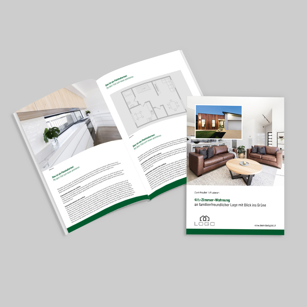Ja, Sie passen die Inhalte schnell und unkompliziert in unseren erstellten Basis-Vorlagen an. Ob Text, Bild oder weitere Elemente: Sie können Ihr Druckprodukt eigenständig aktualisieren. Das ist besonders praktisch, wenn ein Objekt kurzfristig online geht oder sich Details ändern. Der Aufbau ist bewusst einfach gehalten, damit auch Personen ohne Grafik-Erfahrung sicher arbeiten können. Gleichzeitig bleibt das Design geschützt, damit das Ergebnis professionell aussieht und nicht «zusammengebastelt» wirkt.